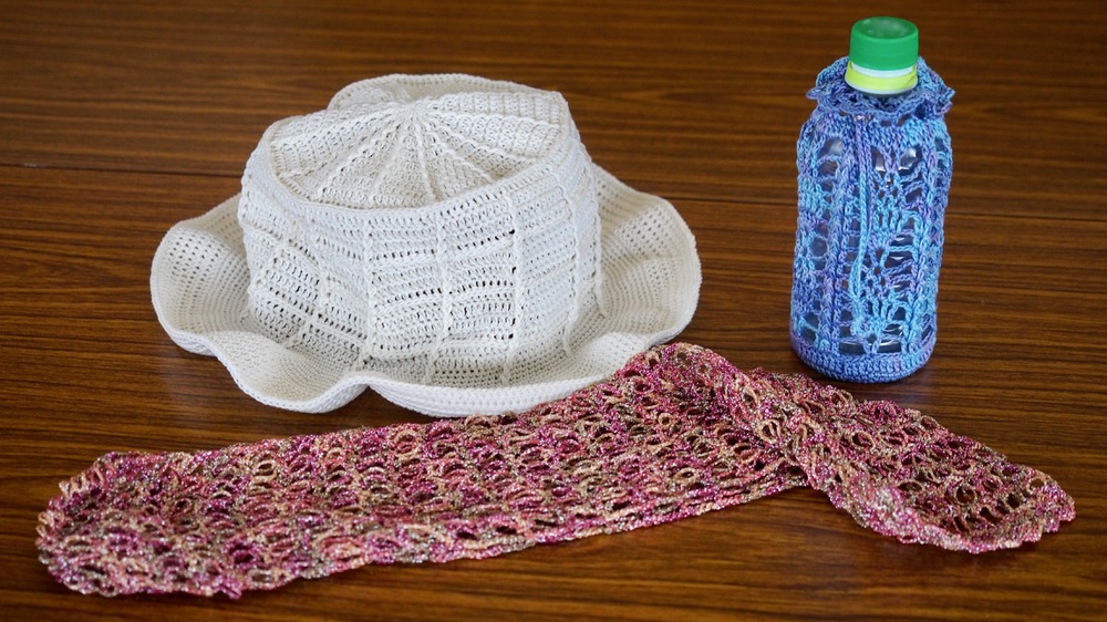 「編み物は冬のイメージですが、夏糸で編むと一年中着られるのよ。」と大久保さん。確かに毛糸で編むと数か月しか着られませんが、夏糸のものは重ね着が出来ます。帽子もバッグも季節を問わず使えますね。