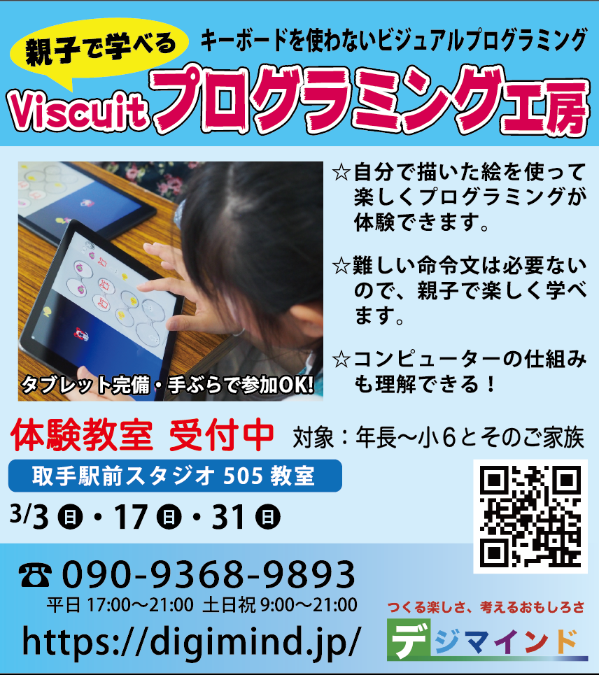スタジオ505では、小さな子どもさんから大人まで、誰でもプログラミングが楽しめる『キッズ・ビスケット・プログラミング教室』を開催中です。