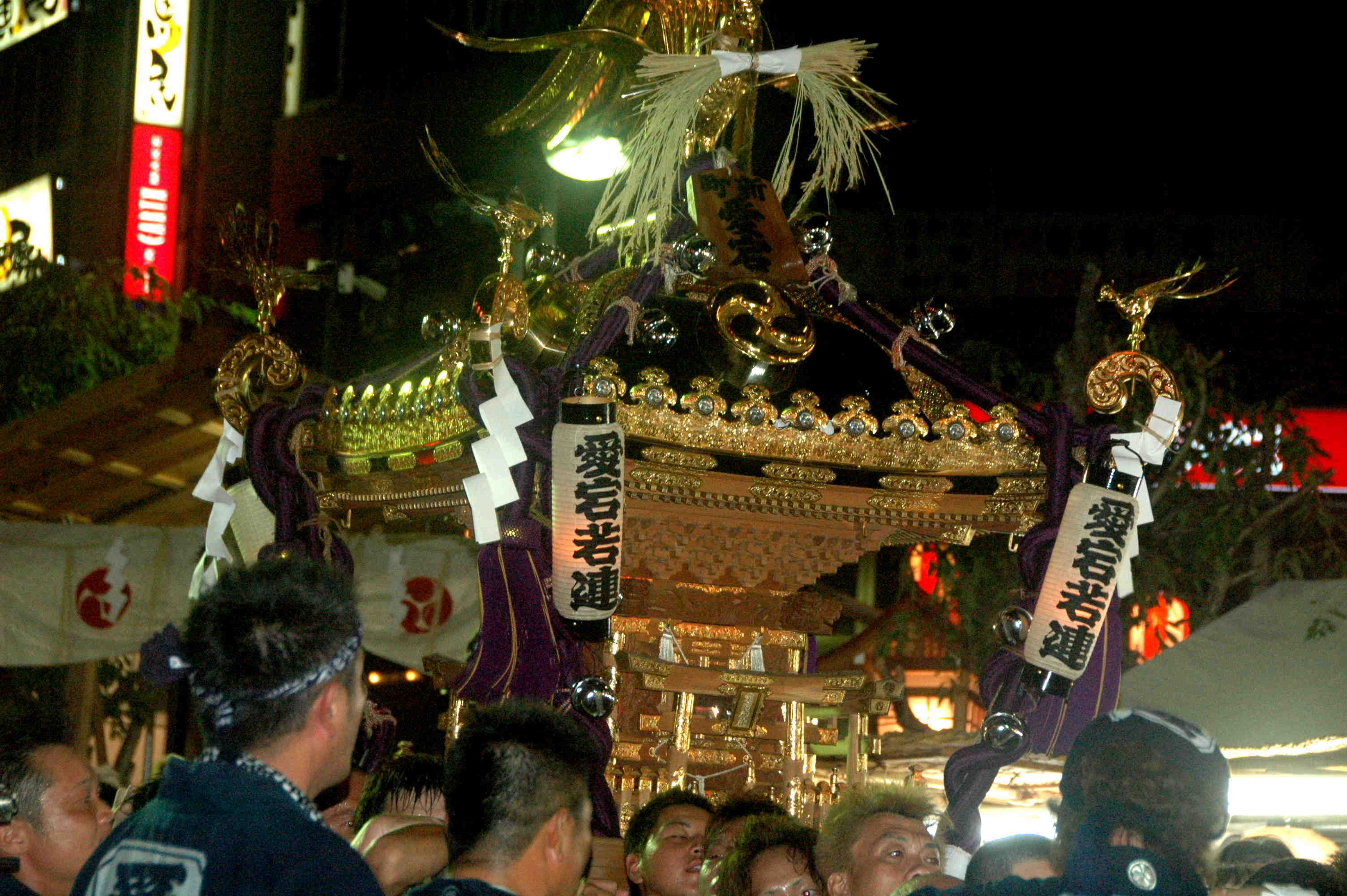 今年は8月25日(土)と26日(日)の二日間、国家安泰・五穀豊穣・商売繫盛を祈願して、高さ2・4メートル、重さ450キロのお神輿を約50名で担ぎます。
