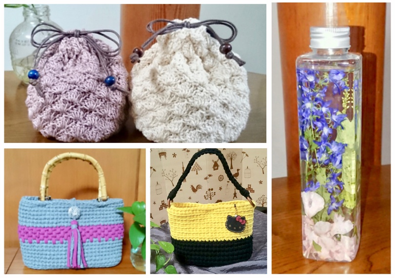 ▲Tシャツバック、ニット小物、ハーバリュウムなど
