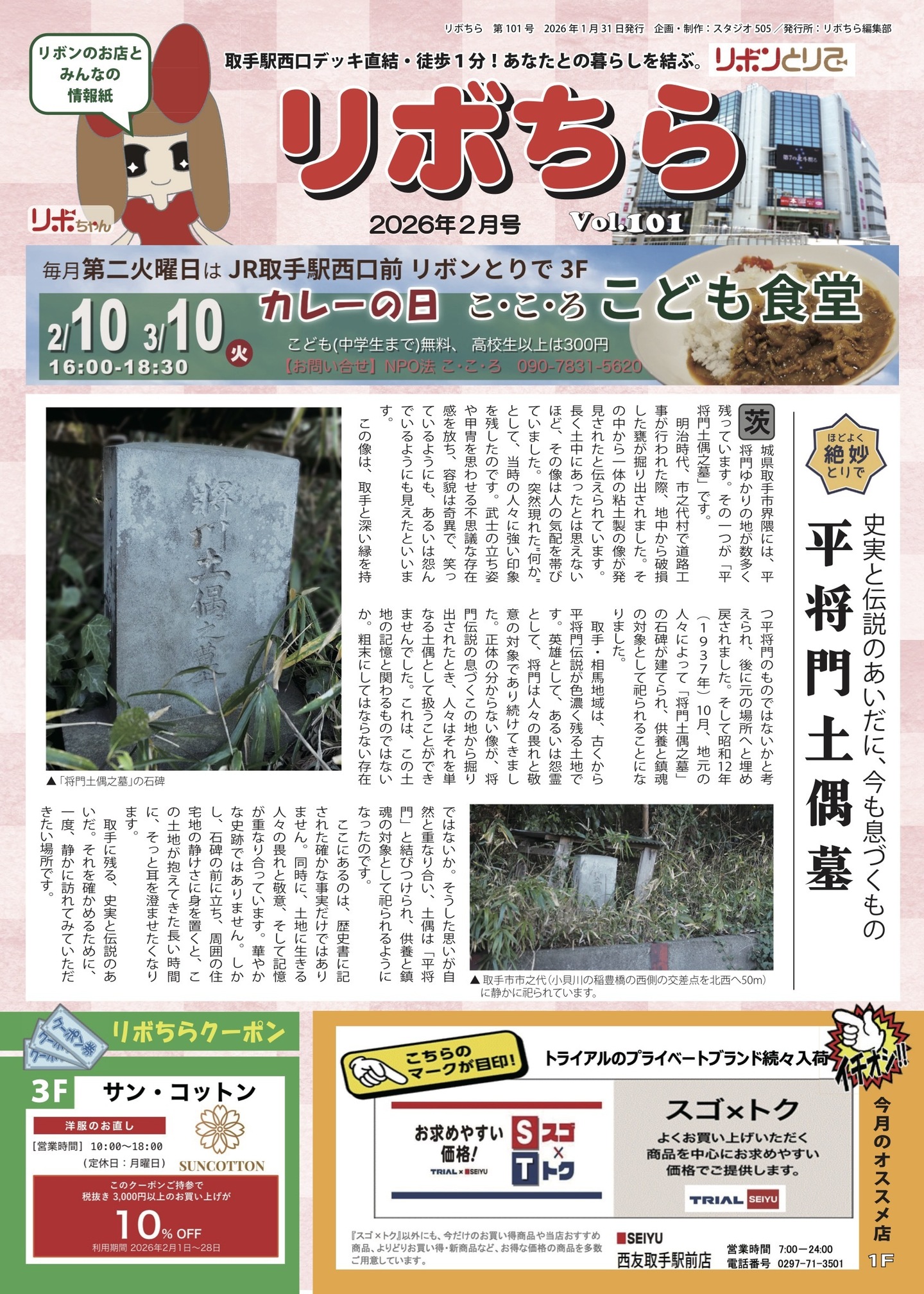 『リボちら』リボンとりでの情報誌 2026年2月号 平将門土蔵墓 2026年1月号 2026年(令和8年) 謹賀新年 2025年12月号 毎月第二火曜日 こども食堂 2025年11月号 ほっ!と出来る ランチスポット 2025年10月号 また来年、夏に会おう 2025年9月号 チャレンジキッチン 出展者募集! 2025年8月号 キッチン アンべべ 2025年7月号 東漸寺を訪ねて 2025年6月号 とりび 2025 2025年5月号 小貝川フラワーカナル 2025年4月号 小堀の渡し 2025年3月号 とりでのぽっくりさん 2025年2月号 リボンとりで 3F クラフトマーケット 2025年1月号 2025年(令和7年) 謹賀新年 2024年12月号 七里が渡 2024年11月号 とりで駅西口の アート達 2024 2024年10月号 阿弥陀如来坐像 (金仙寺) 2024年9月号 疫病退散 鷲神社と疱瘡神 2024年8月号 古き良き伝統を受け継ぐ戸頭神社 大灯籠祭 2024年7月号 戸頭駅前ロータリーの市長賞アート作品 2024年6月号 正岡子規、藤代に宿す 2024年5月号 長禅寺の境内を散策 2024年4月号 岡堰と鯉のぼりプロジェクト 2024年3月号 「さざえ堂様式」の長禅寺三世堂 2024年2月号 シクロクロス取手ステージ 2024年1月号 2024年 謹賀新年 2023年12月号 一本刀土俵入 2023年11月号 利根川を見守る 鮭地蔵 2023年10月号 絵はがきでよみがえる昔の取手 2023年9月号 三軒地稲荷神社 可愛いお狐様 2023年8月号 くじばさまとゆめみ野公園 2023年7月号 大鹿山 弘経寺 2023年6月号 とりび 2023年5月号 取手市議会を観てみよう 2023年4月号 地蔵ケヤキ 2023年3月号 道標のある「取手の坂道」 2023年2月号 茨城シクロクロス 取手ステージ 2023年1月号 2023年 謹賀新年 2022年12月号 2022年11月号 2022年10月号 2022年9月号 2022年8月号 2022年7月号 2022年6月号 2022年5月号 2022年4月号 2022年3月号 2022年2月号 2022年1月号 2021年12月号 2021年11月号 2021年10月号 2021年9月号 2021年8月号 2021年7月号 2021年6月号 2021年5月号 2021年4月号 2021年4月号 2021年3月号 2021年3月号 2021年2月号 2021年2月号 2021年1月号 2021年1月号 2020年12月号 2020年12月号 2020年11月号 2020年11月号 2020年10月号 2020年10月号 2020年9月号 2020年9月号 2020年8月号 2020年8月号 2020年7月号 2020年7月号 2020年6月号 2020年6月号 2020年5月号 2020年5月号 2020年4月号 2020年4月号 2020年3月号 2020年3月号 2020年2月号 2020年2月号 2020年1月号 2020年1月号 2019年12月号 2019年12月号 2019年11月号 2019年11月号 2019年10月号 2019年10月号 2019年9月号 2019年9月号 2019年8月号 2019年8月号 2019年7月号 2019年7月号 2019年6月号 2019年6月号 2019年5号 2019年5月号 2019年4月号 2019年4月号 2019年3月号 2019年3月号 2019年2月号 2019年2月号 2019年1月号 2019年1月号 2018年12月号 2018年12月号 2018年11月号 2018年11月号 2018年10月号 2018年10月号 2018年9月号 2018年9月号 2018年8月号 2018年8月号 2018年7月号 2018年7月号 2018年6月号 2018年6月号 2018年5月号 2018年5月号 2018年2月号 2018年2月号 2018年1月号 2018年1月号 2017年12月号 2017年12月号 2017年11月号 2017年11月号 2017年10月号 2017年10月号 2017年9月号 2017年9月号 2017年8月号 2017年8月号